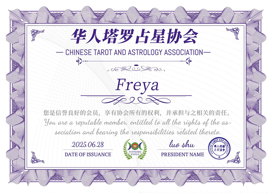 Knowledge Level:Outstanding Graduate of Champion Tarot Psychology Workshop