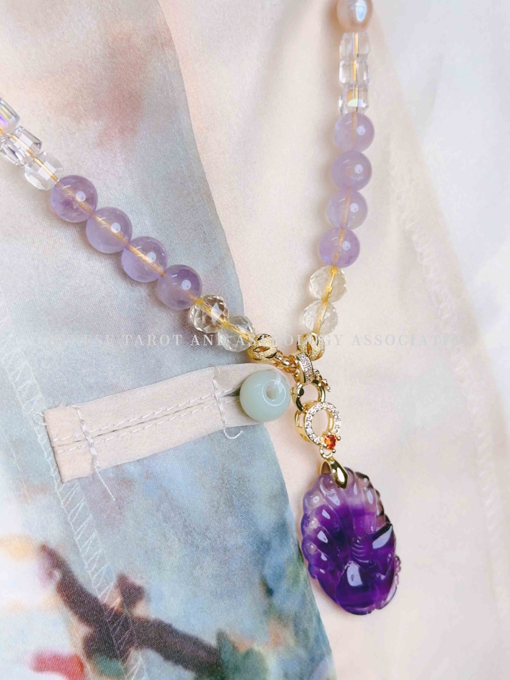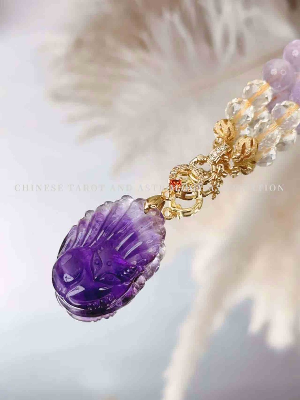 "Super Seven Amethyst Fox & Yellow Crystal & Lavender" Necklace 价格: