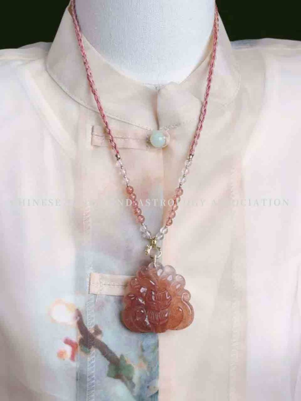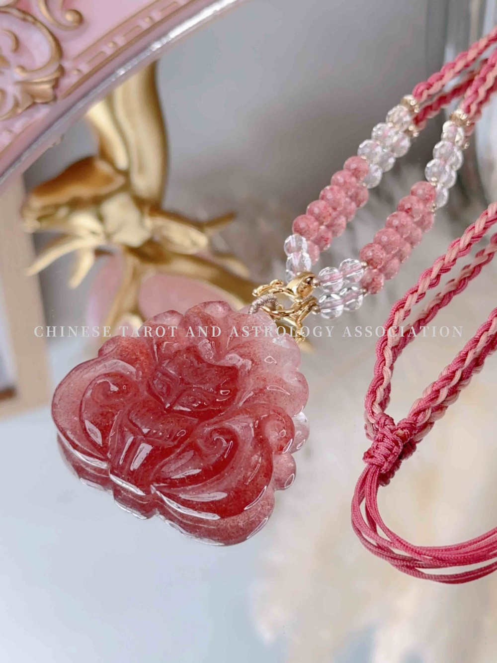 "Strawberry Quartz Fox & Braided Rope" Necklace 价格: