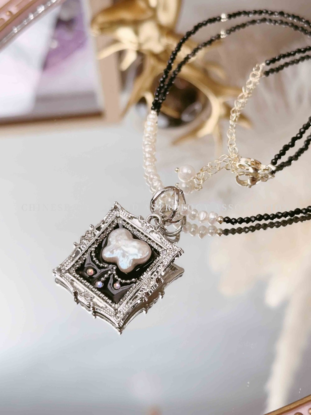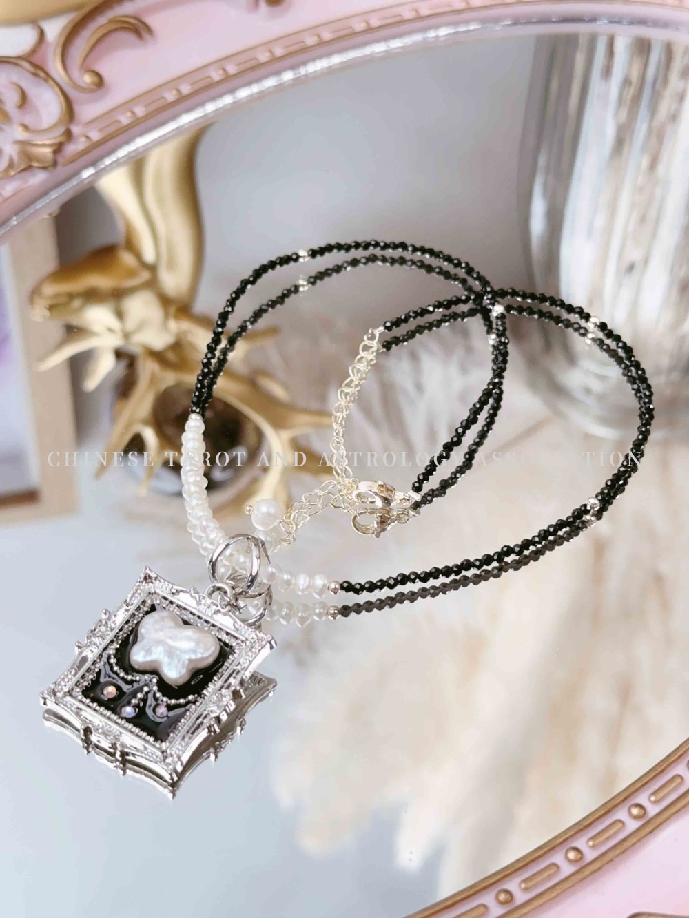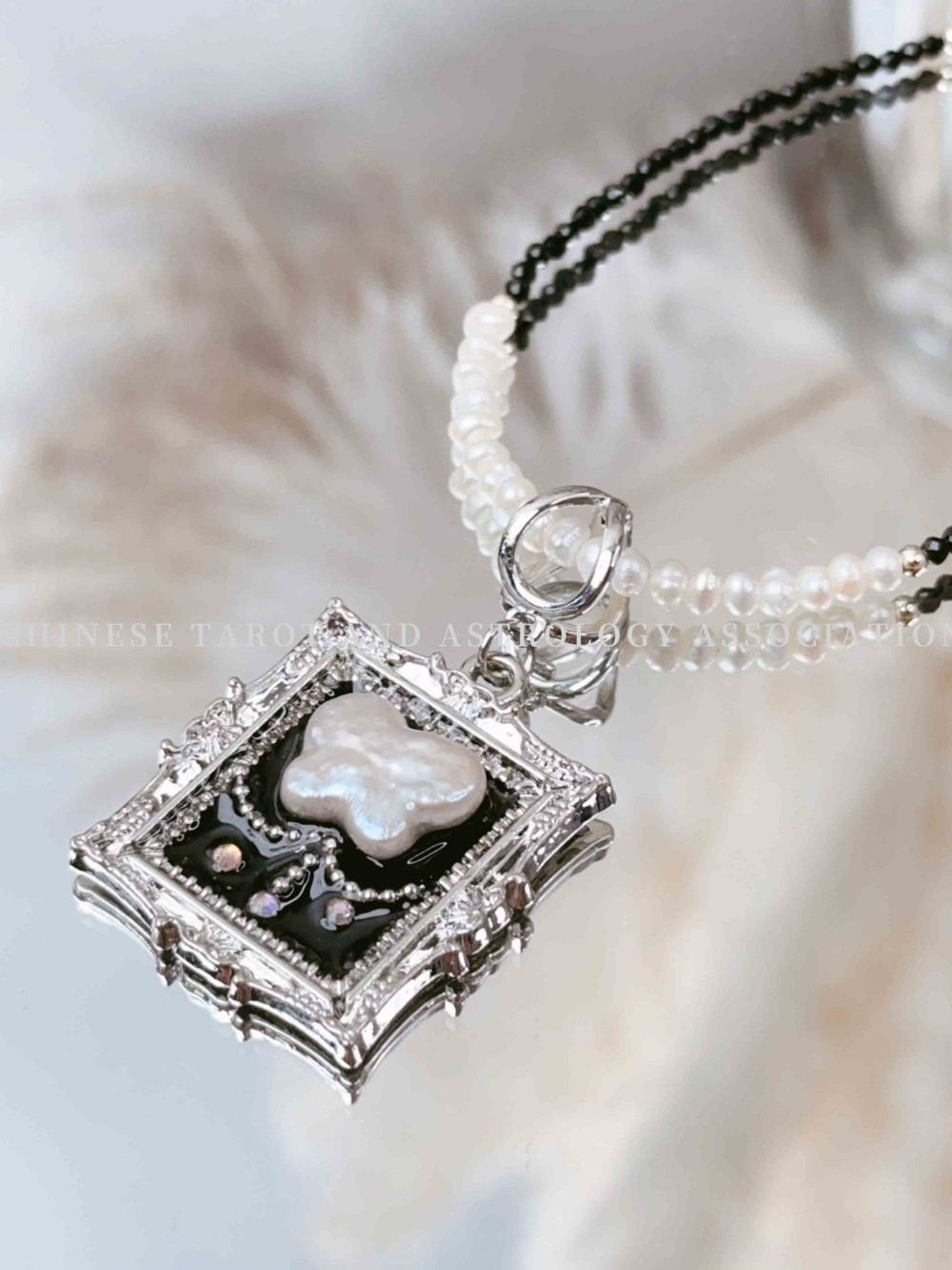 "Pearl Butterfly Pendant & Black Spinel Pearl Bead" Necklace 价格: