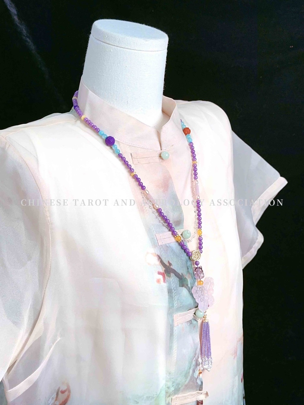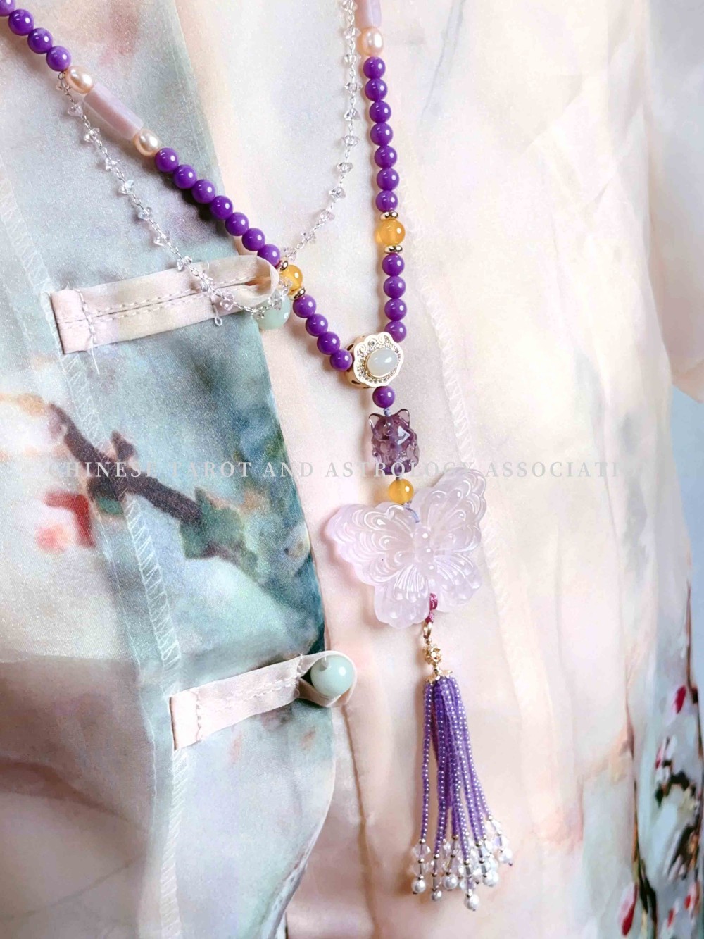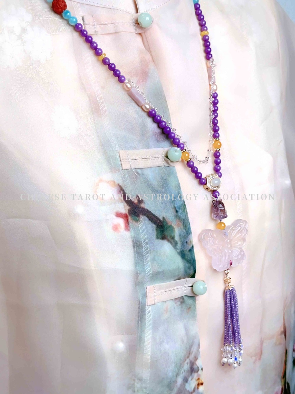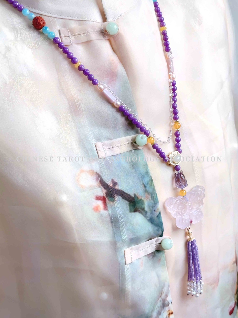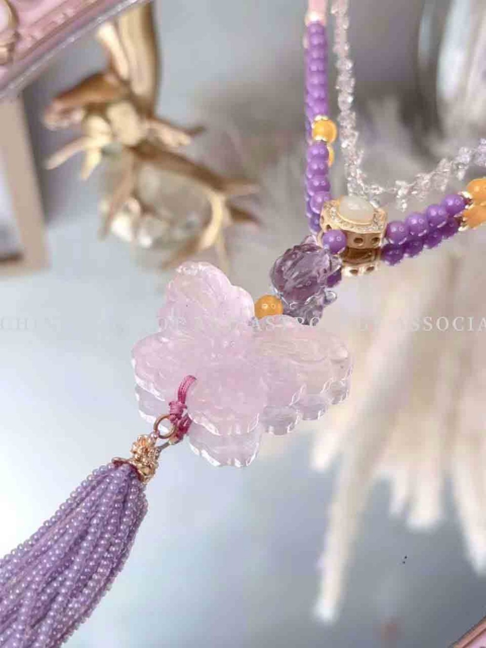 "Pink Crystal Butterfly & Amethyst Fox & Purple Lepidolite Tassel" Neo-Chinese Necklace 价格: