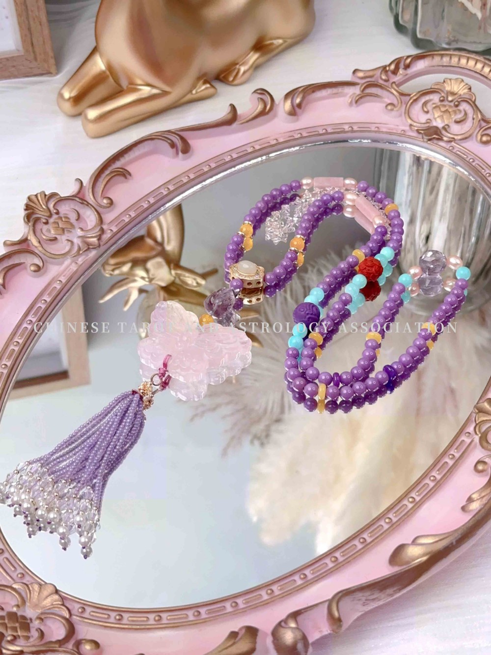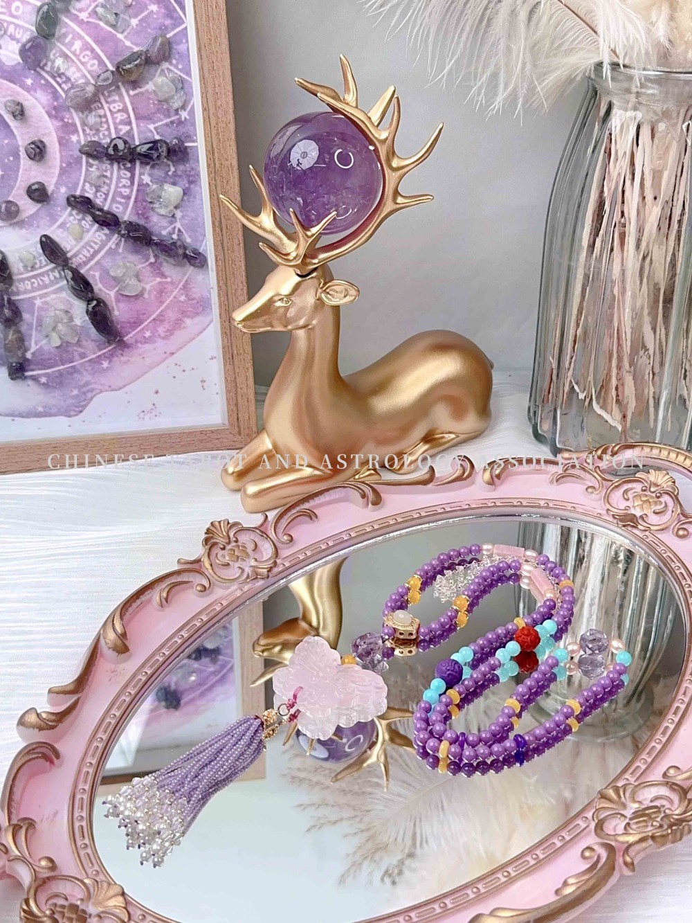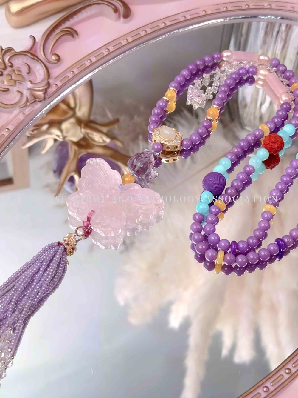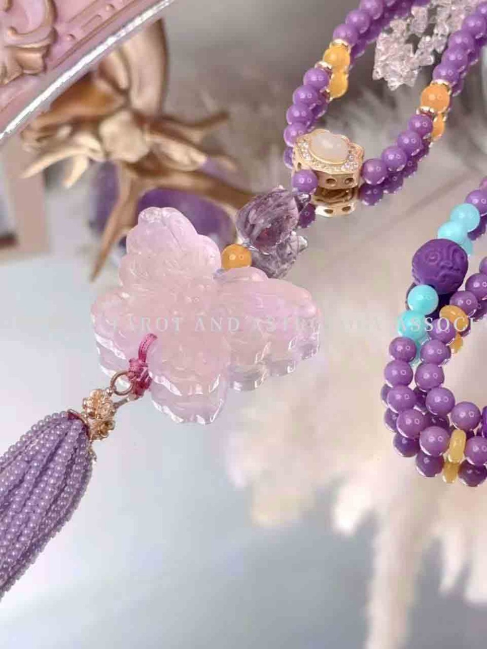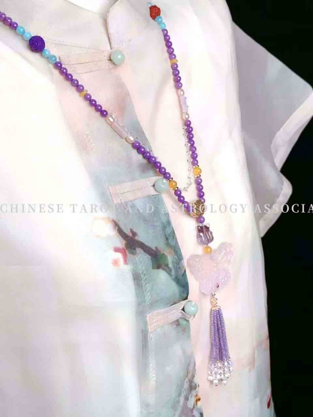 "Pink Crystal Butterfly & Amethyst Fox & Purple Lepidolite Tassel" Neo-Chinese Necklace 价格: