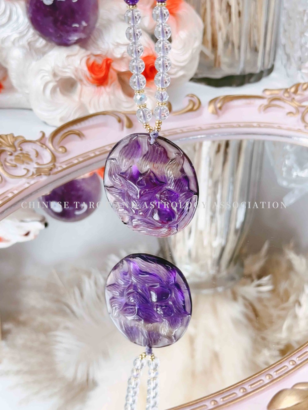 "Pink Fox & Amethyst & White Crystal" Necklace