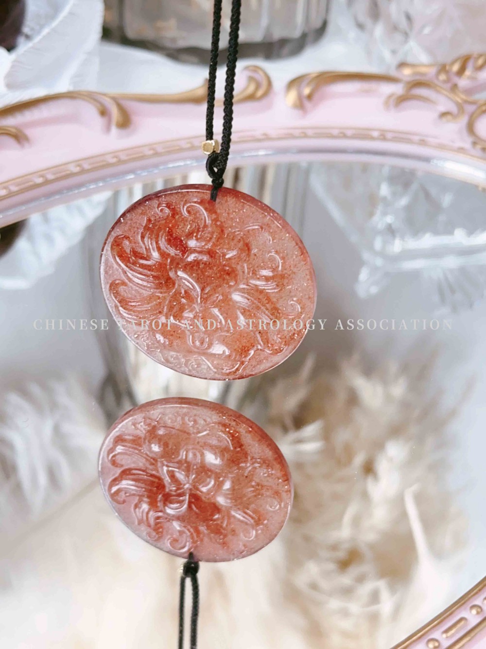 "Red Hematoid Quartz Fox & Nanhong Agate & Pearl & Red Sandalwood" Necklace